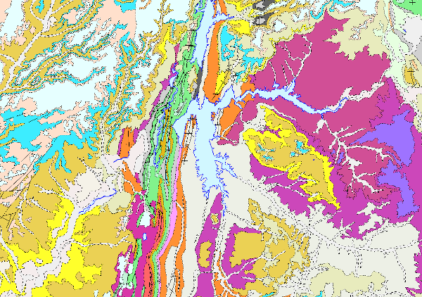 (The rock units of the sheet separated by different types of contacts are represented, together with the tectonic structure, faults and map traces of folds, the orientation and dip of planar and linear elements contained in the rocks, structural and textural singularities of igneous and metamorphic rocks, water points, mineral deposits and indications, presence of fossils and other elements of punctual representation.)