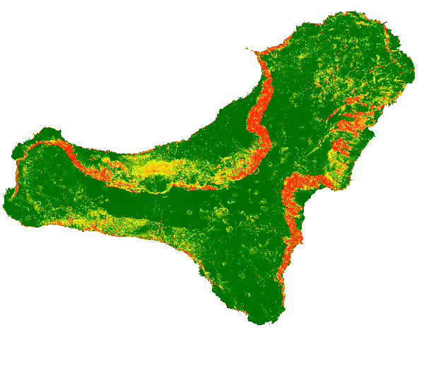 The map shows the probability of each single pixel to be a rock fall source area and can be used as input for rockfall regional modelling in El Hierro (Canary Island)