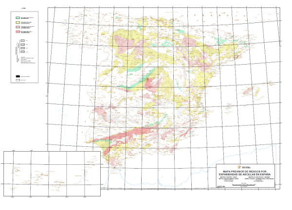 WMS of Predictive map of risk due to expansive clays in Spain at a scale of 1:1,000,000.