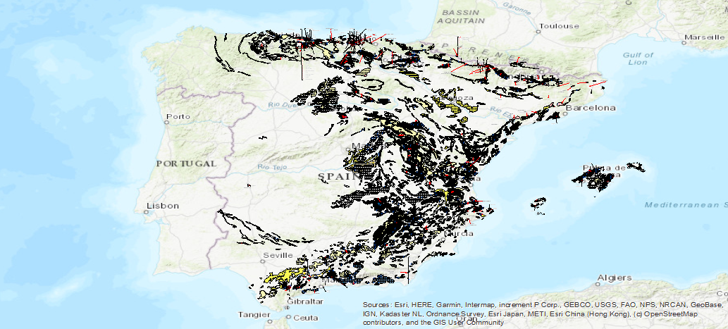 Service of visualization of the Karst Map of Spain at scale of 1:1.000.000, which gathers the different 'karstifiable' lithologies indicating their type (carbonates, gypsums and detritus), and the intensity of karstification in each one of the zones. Also included are caves, poles, outcrops and other hydrogeological and geomorphological entities linked to karstification processes.